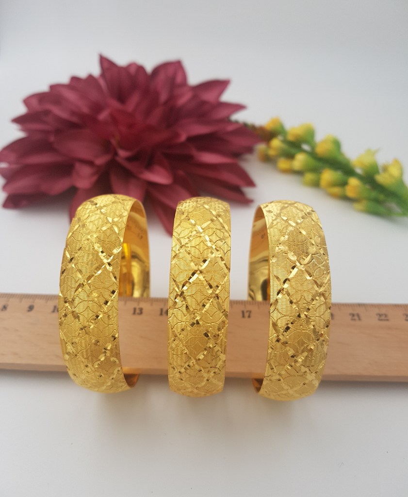 24 Ayar Has Altın Kaplama 15 MM Eninde Baklava Desen Kumlu Bilezik