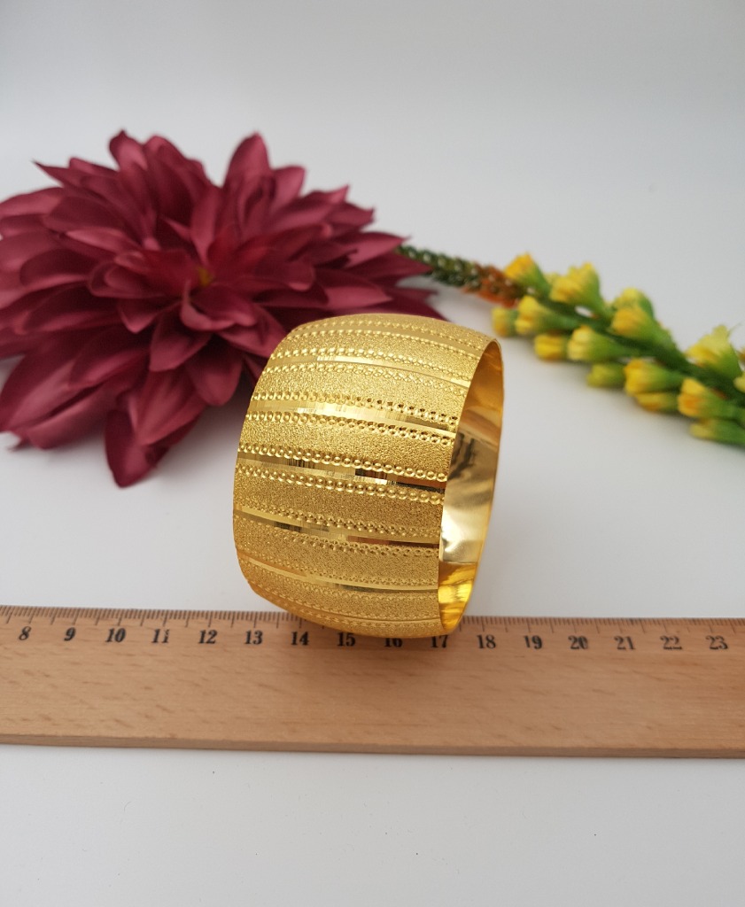 24 Ayar Has Altın Kaplama 40 MM Eninde Yan Çizgili Model Kumlu Mega Bilezik