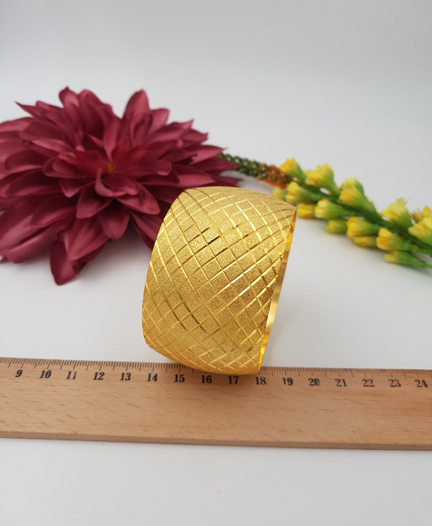 24 Ayar Has Altın Kaplama 40 MM Eninde Baklava Desenli Mega Bilezik