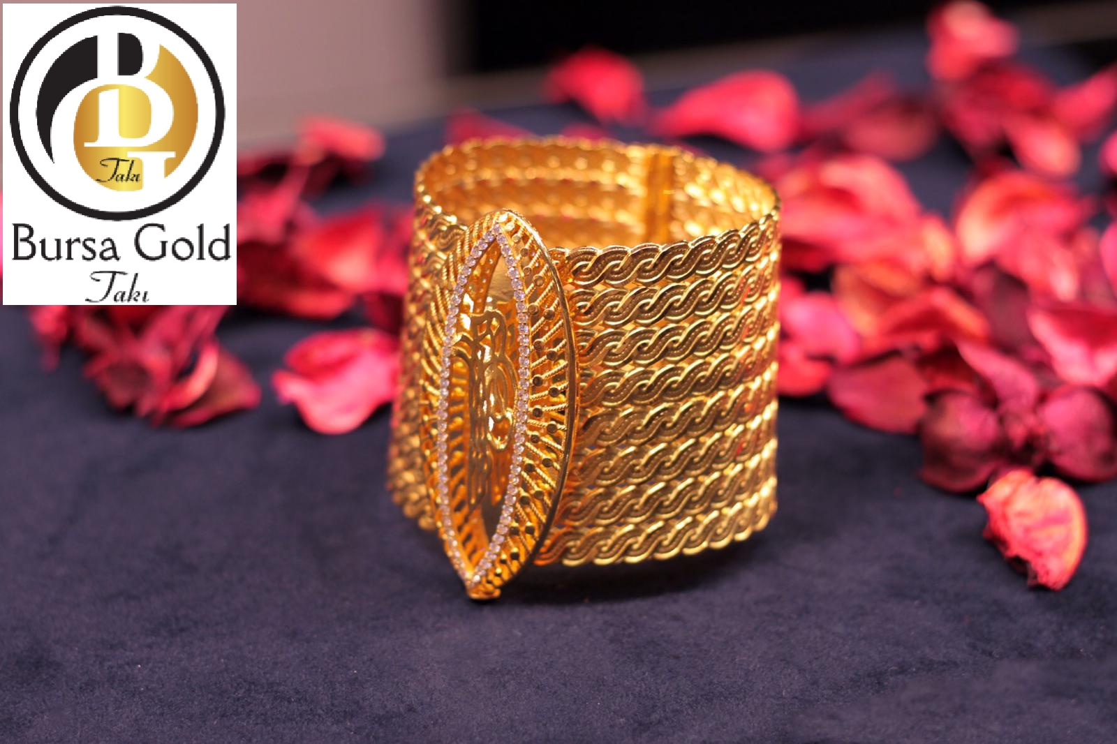 24 Ayar Has Altın Kaplama Zirkon Taşlı Osmanlı Tuğra Toka 8 Sıra Trabzon Örgü Kelepçe