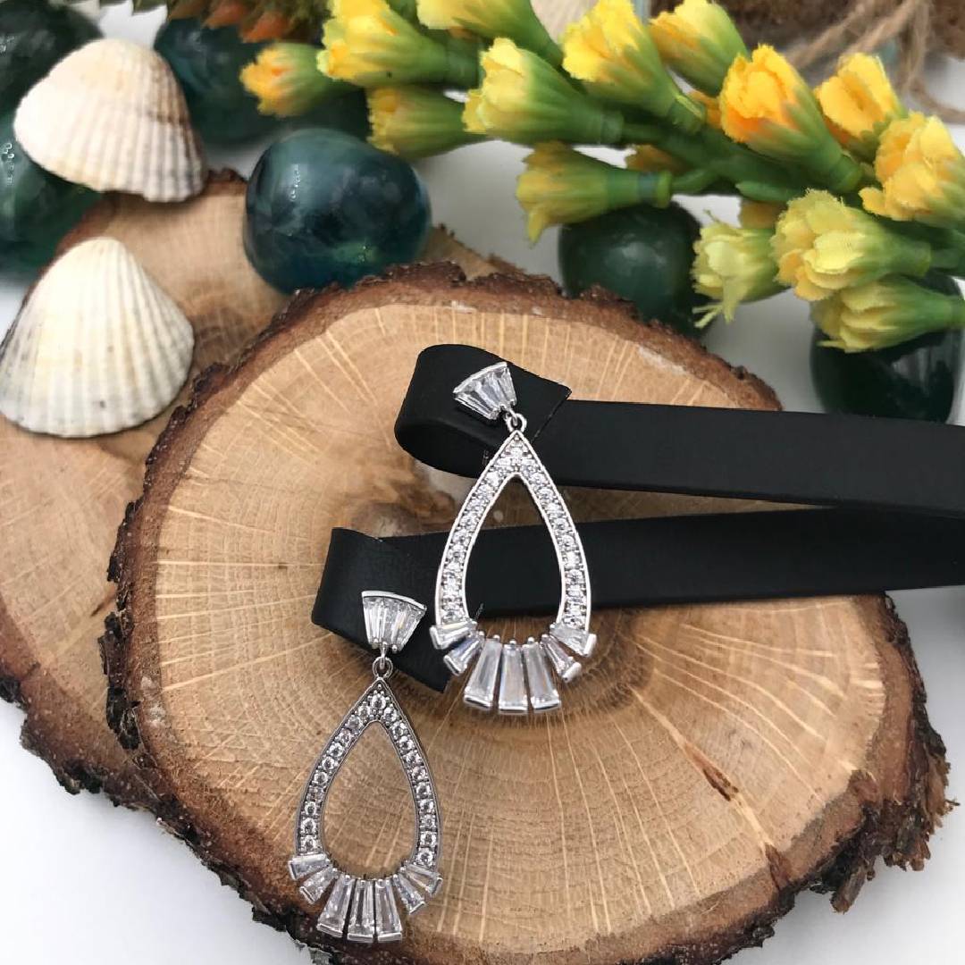 Beyaz Altın Kaplama Swarovski Baget Taşlı Damla Fantazi Günlük Spor Küpe