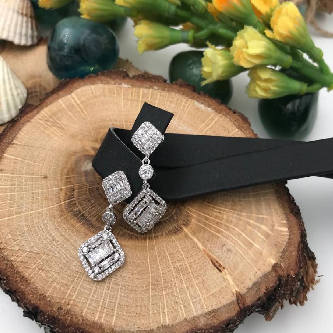 Beyaz Altın Kaplama Swarovski Baget Taşlı Fantazi Günlük Spor Küpe