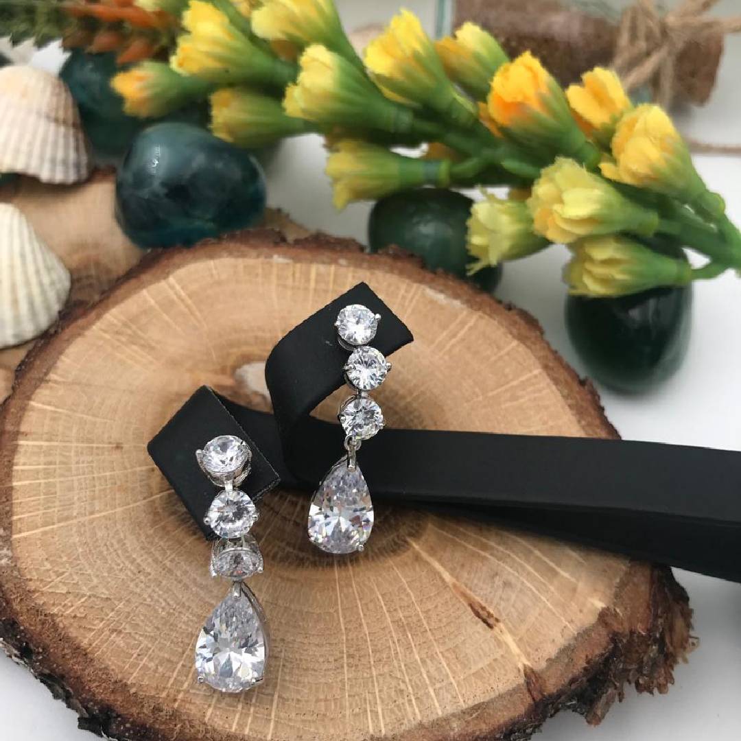Beyaz Altın Kaplama Swarovski Baget Taşlı Damla Fantazi Günlük Spor Küpe