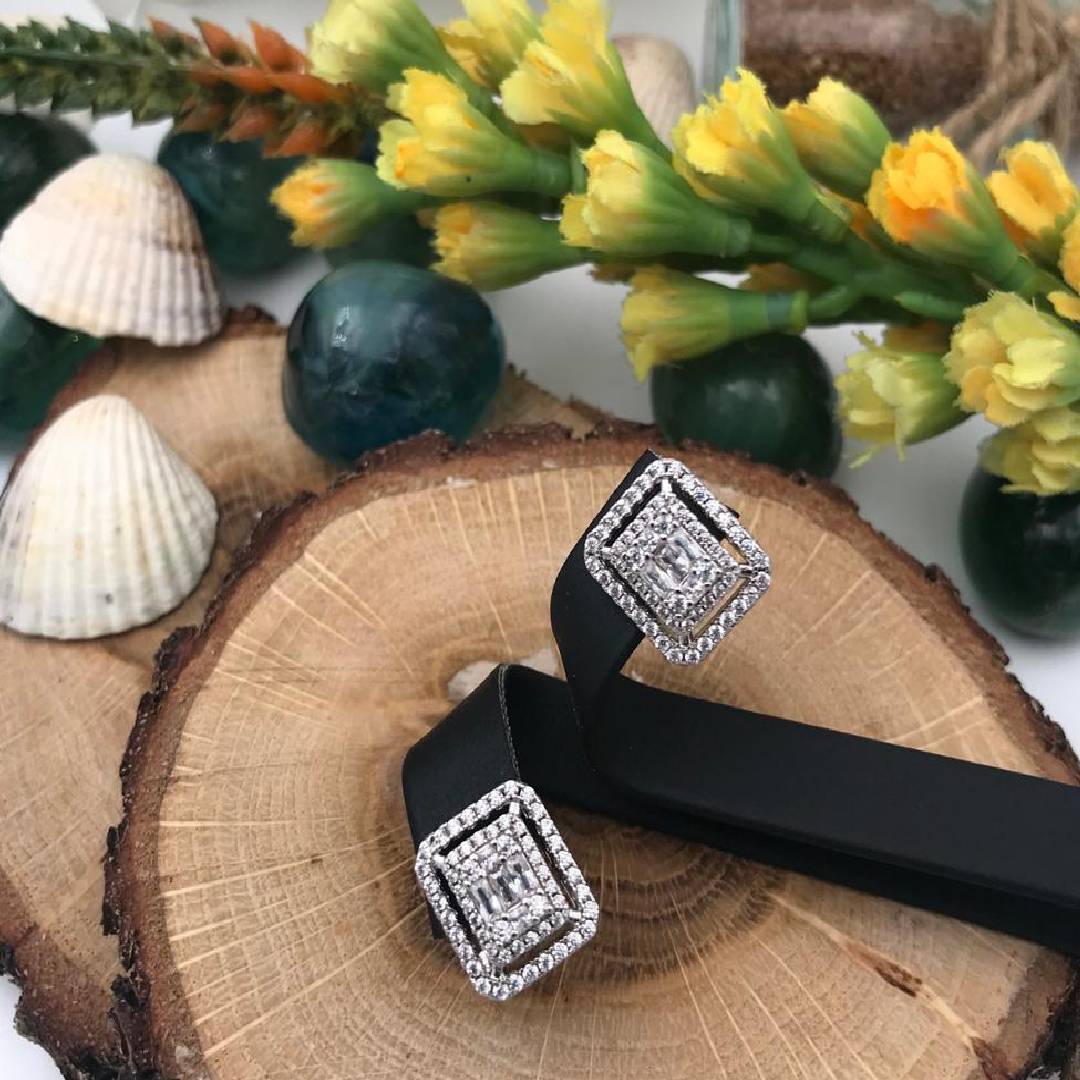 Beyaz Altın Kaplama Swarovski Baget Taşlı Fantazi Günlük Spor Küpe