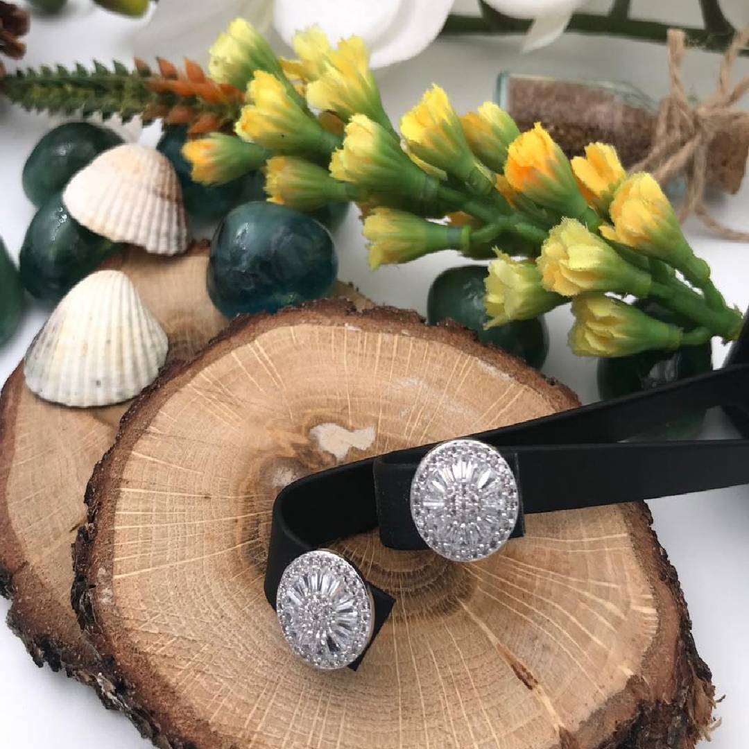 Beyaz Altın Kaplama Swarovski Baget Taşlı Yuvarlak Nokta Fantazi Günlük Spor Küpe