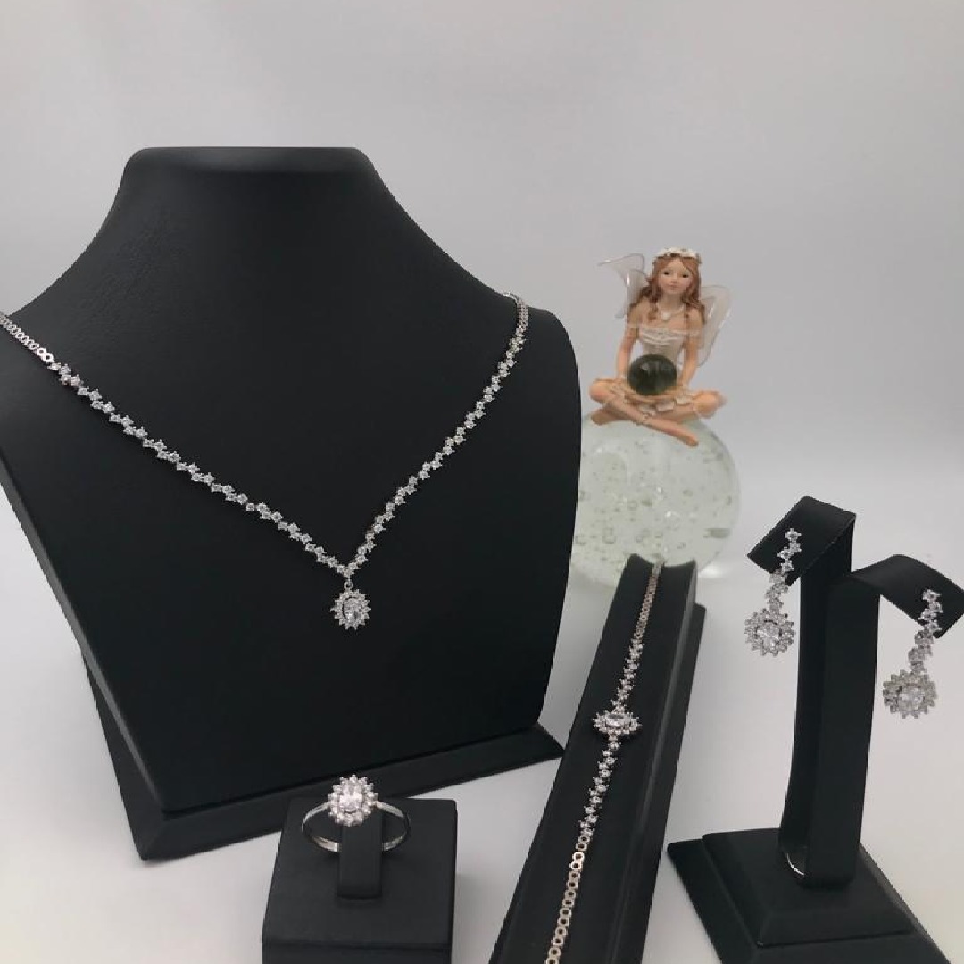 Gümüş Üzeri Beyaz Altın Kaplama Swarovski Baget Taşlı Damla’V’Model Günlük ve Özel Gün Seti