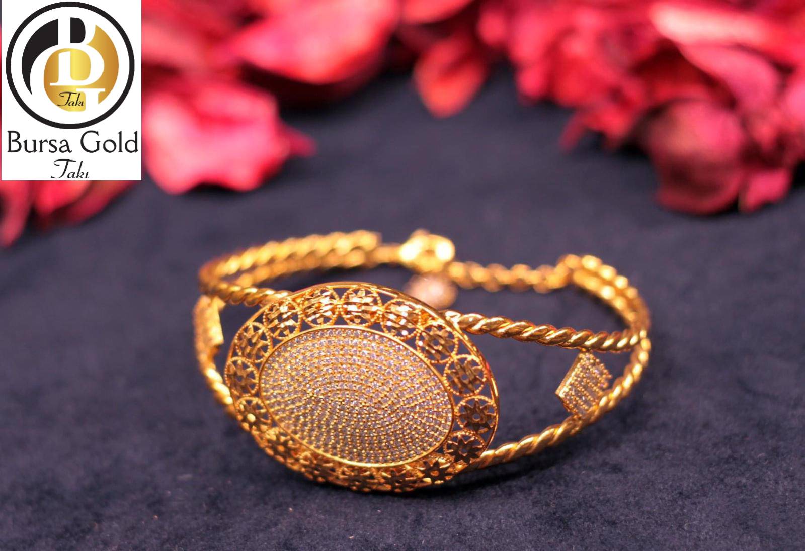 24 Ayar Has Altın Kaplama Zirkon Taşlı Günlük İnce Spor Kelepçe