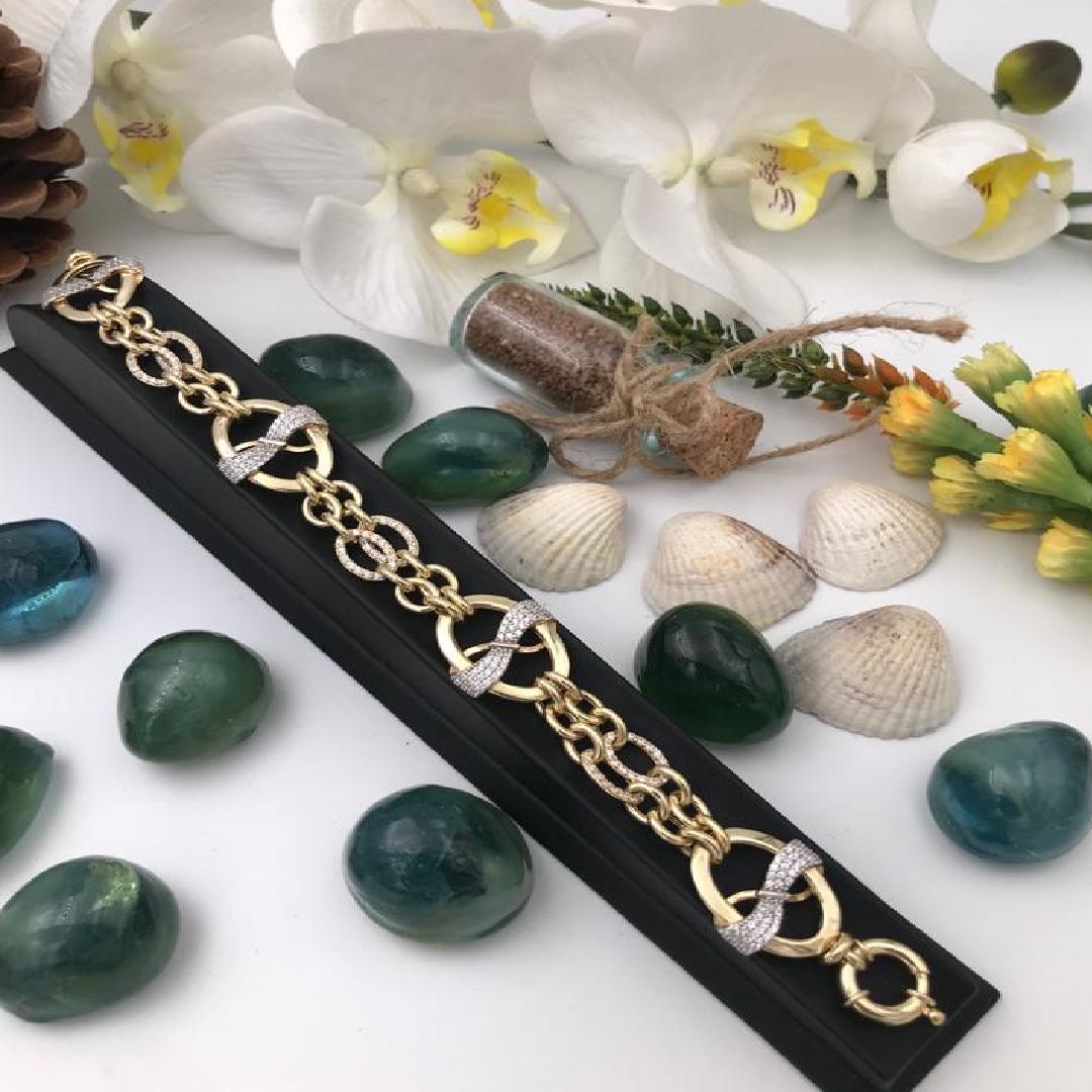 Gümüş Üzeri Altın Kaplama Hallow Taşlı Zincir Günlük Spor Bileklik
