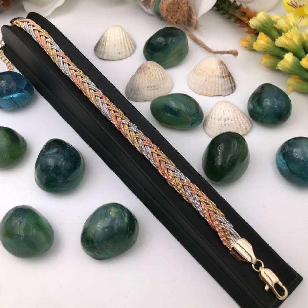 Altın Kaplama Üç Renk Saç Örgü Günlük Spor Bileklik