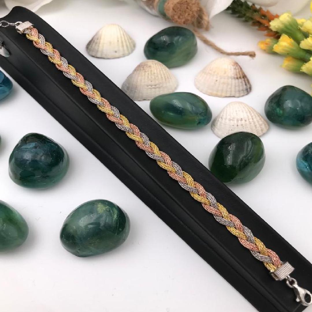 Altın Kaplama Üç Renk İnce Saç Örgü Günlük Spor Bileklik