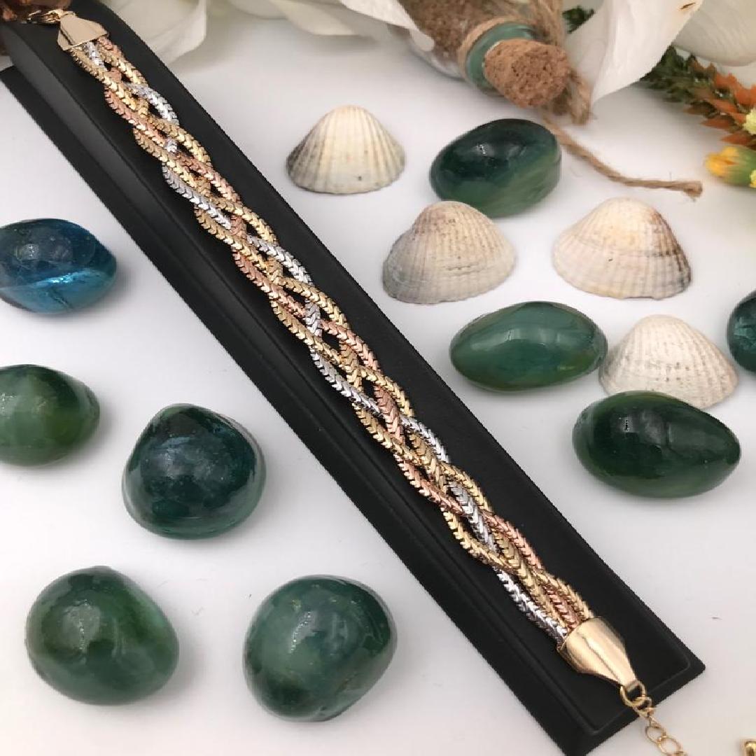 Altın Kaplama Üç Renk İnce Seyrek Saç Örgü Günlük Spor Bileklik