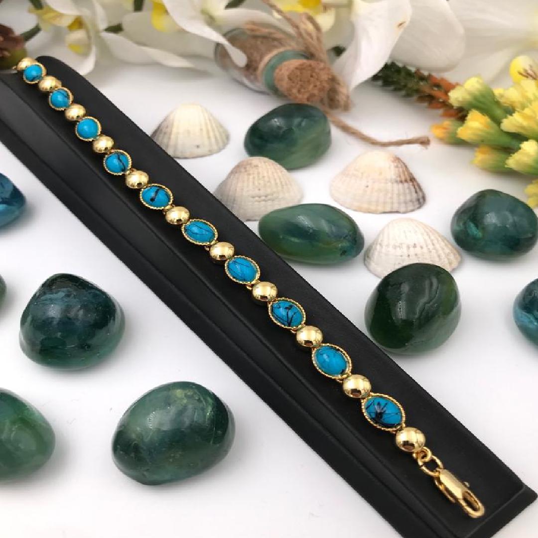 Altın Kaplama Mavi Firuze Taşlı Günlük Spor Bileklik