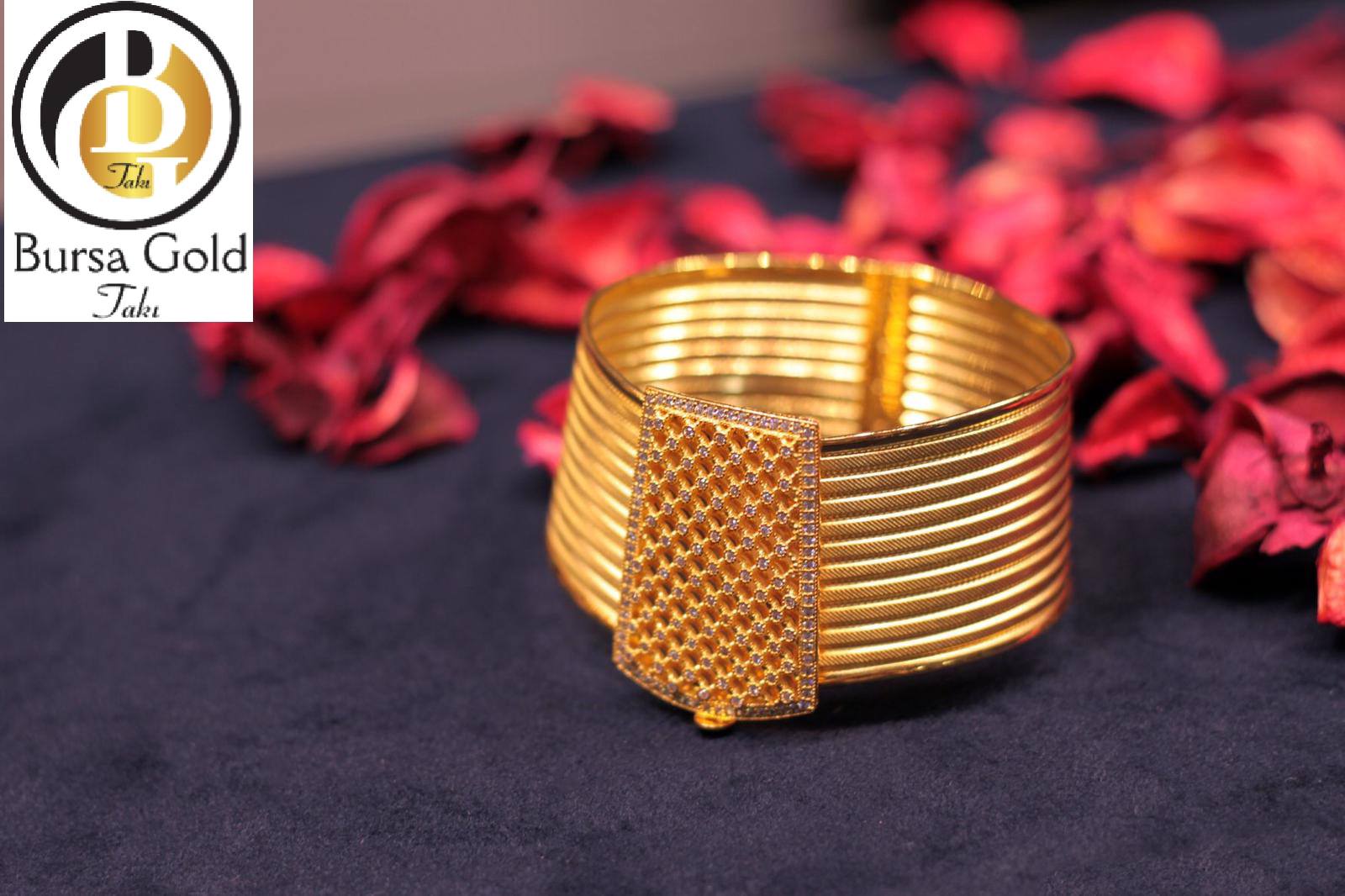 24 Ayar Has Altın Kaplama Zirkon Taşlı Petek Model Trabzon Hasır Kelepçe