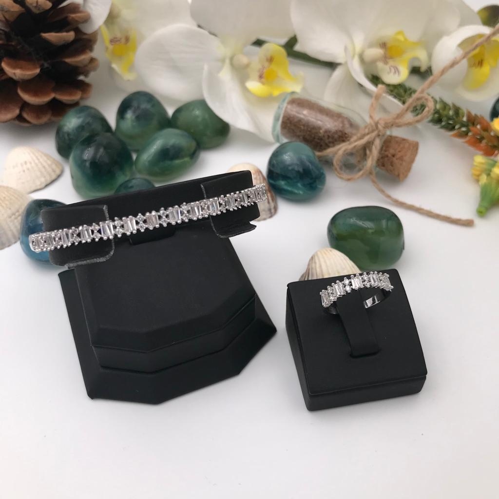 Beyaz Altın Kaplama Baget Taşlı Suyolu Günlük Spor Kelepçe Bilezik